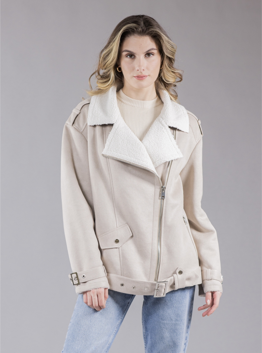 Теплая куртка из эко-кожи с косой линией застежки в стиле «пилот» – новинка весенней коллекции сезона 2023 от «Тверской меховой». Куртка «Пилот3» – классика верхней одежды из кожи, актуальная многие годы подряд, в современной аранжировке. В отличие от классической модели «пилота» пояс распложен не на линии талии, а на линии бедра. Молочно-белый цвет покрытия из эко-кожи в сочетании с белым выворотным мехом из полиэстера создает сияющей нежный образ, который сразу выделяется из серых оттенков межсезонья. Косая застежка-молния позволяет легко менять форму воротника – от аккуратного отложного в полностью застегнутом виде до широкого английского воротника, который можно дополнить ярким шейным платком. Молнии на прорезных карманах и рукавах, погоны и металлические пряжки завершают образ классической куртки – «пилота». Сочетайте брутальность и нежность в куртке «Пилот3»!Характеристики