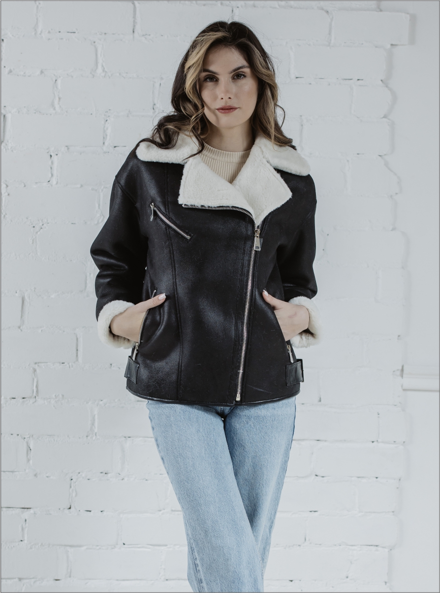 Эко дубленка 2310а «Пилот» воротник черный/белый цвета черный/белый