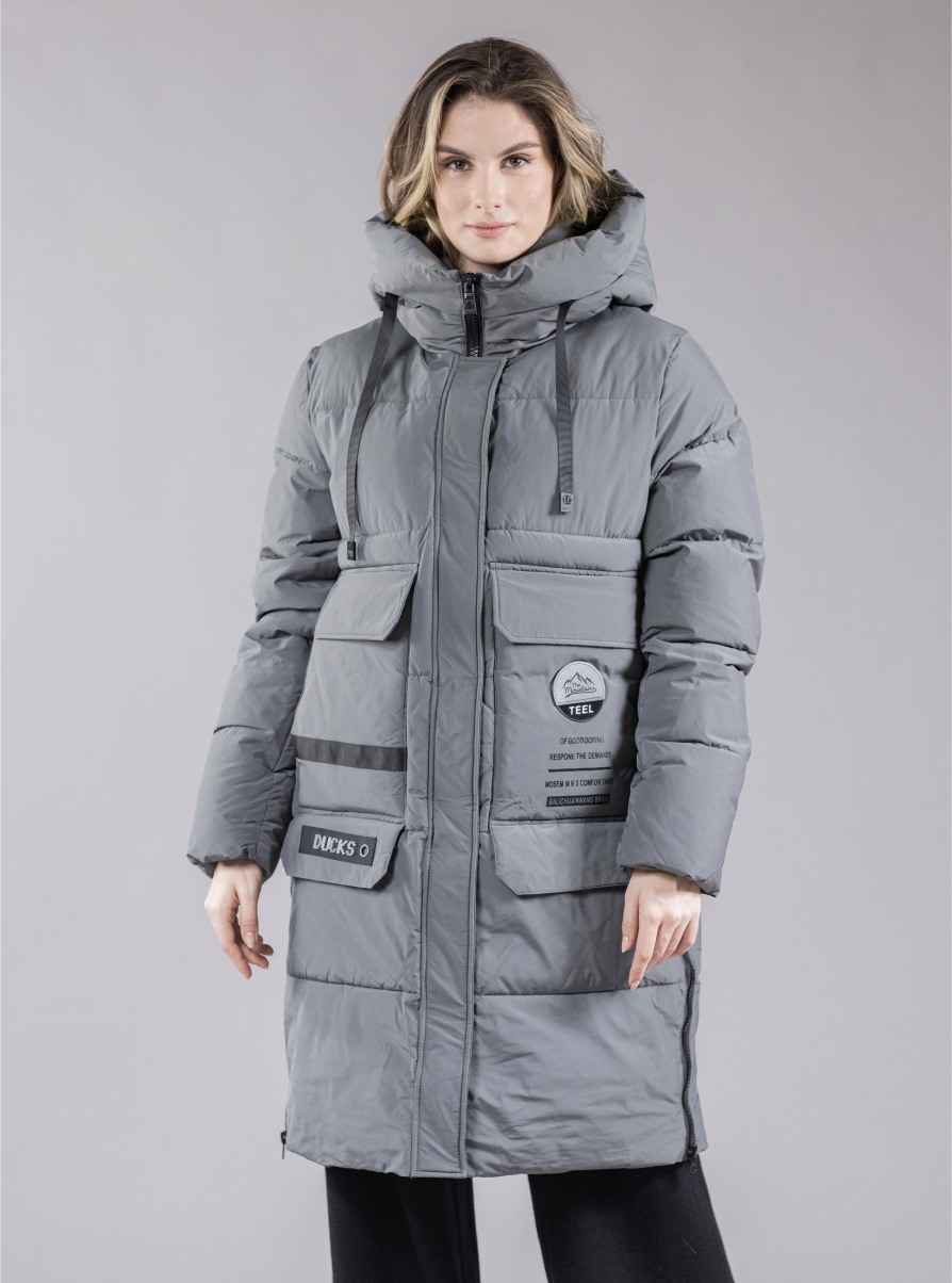 Необычный пуховик в стиле «милитари» для ценителей активного образа жизни без лишних затрат. Модель «Мюнхен» европейской длины 95 см и прямого силуэта, она отлично смотрится на стройной фигуре 38 – 46 размера. Стальной серый цвет гармонично сочетается с любой спортивной или повседневной одеждой. Боковые разрезы на молнии позволяют получить больше свободы движений для занятий спортом на свежем воздухе, активной ходьбы или вождения автомобиля. Узнаваемость модели придают объемные накладные карманы с принтом и светоотражающим элементом. Сочетание полиэстера и биопуха надежно защищает от сильного ветра, сырости и осадков, не требует особого ухода, долго носится. Объемный капюшон с высокой стойкой укрывает голову и область шеи, не требует дополнительного утепления шарфом или головным убором. Качественная фурнитура прослужит несколько сезонов. Пуховик «Мюнхен» - оптимальный выбор для стильной и экономной зимы!Характеристики
