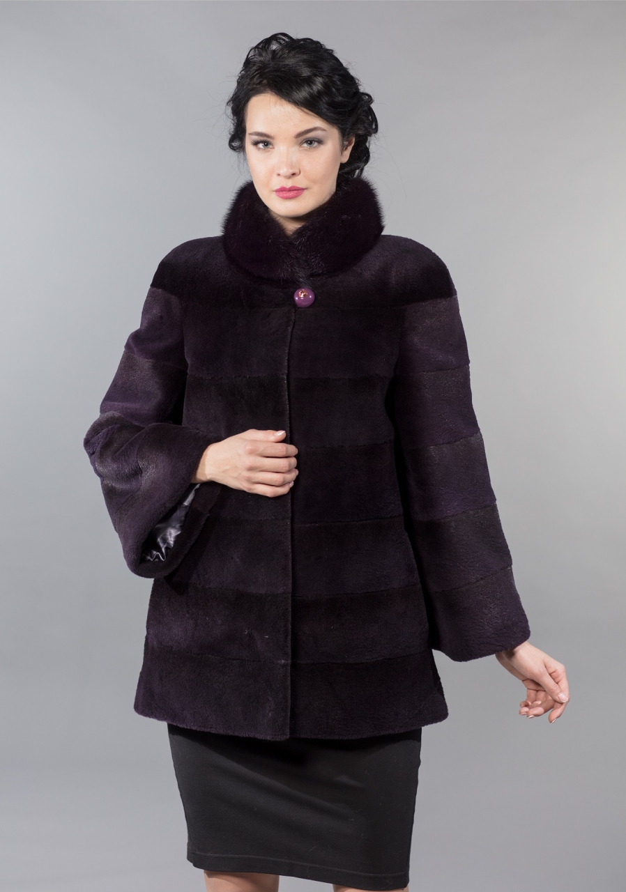 Куртка из стриженой нутрии «Моника» воротник фиолетовый цвета фиолетовый